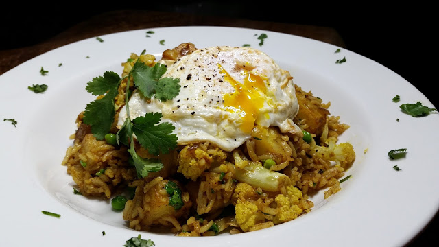 Yes, Moe is lucky. I know my husband would love pork chops for breakfast (if only I would get up at the same time as he does). Wonderful assortment of breakfast ideas. I was especially impressed by the aloo gobi fried rice and the smoked salmon served on latkes with dill sauce.