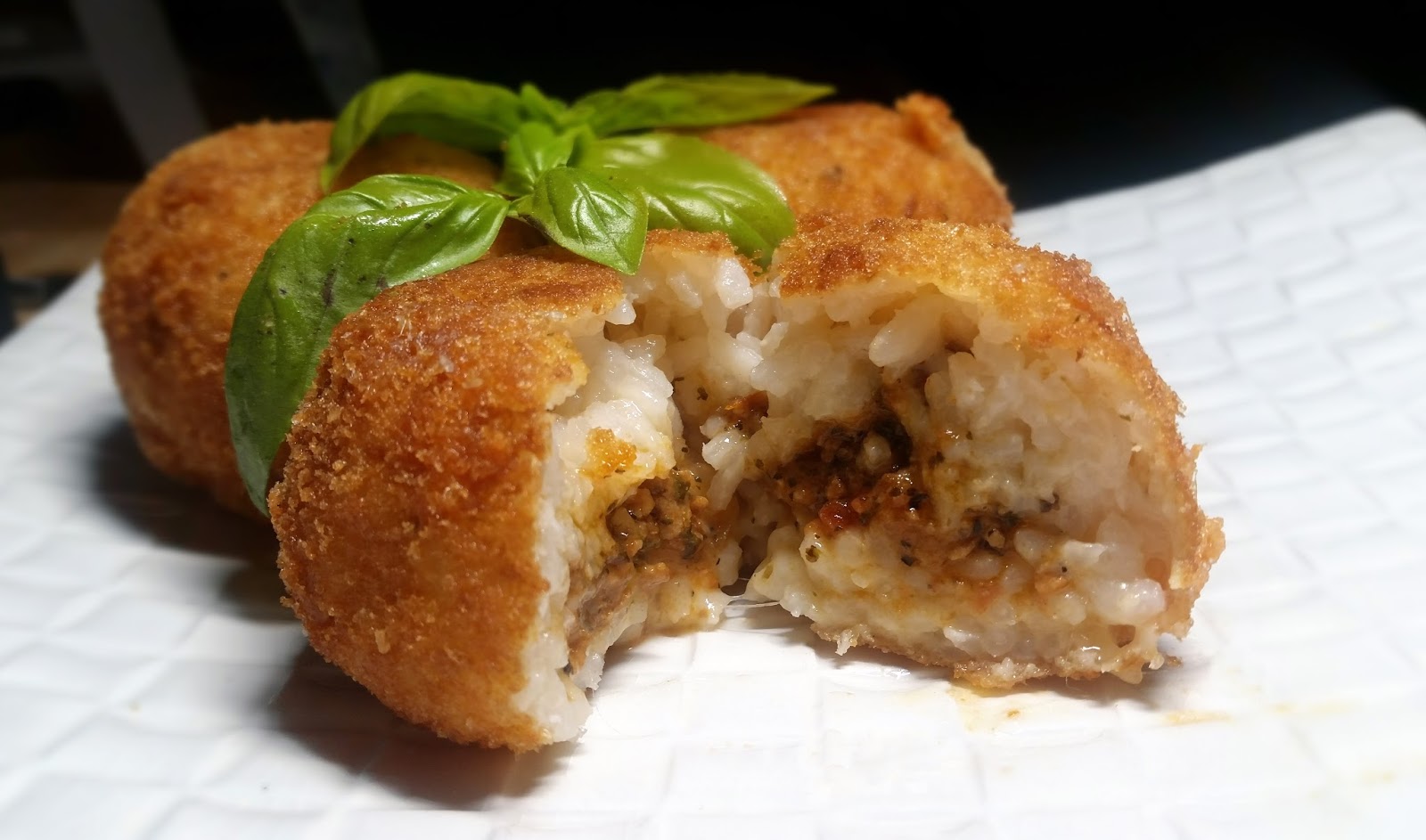 Mixed fresh mozzarella into the risotto and filled with Pork Bolognese.