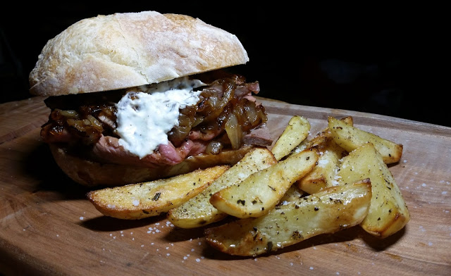 made Prime Rib Sandwiches with caramelized onions.