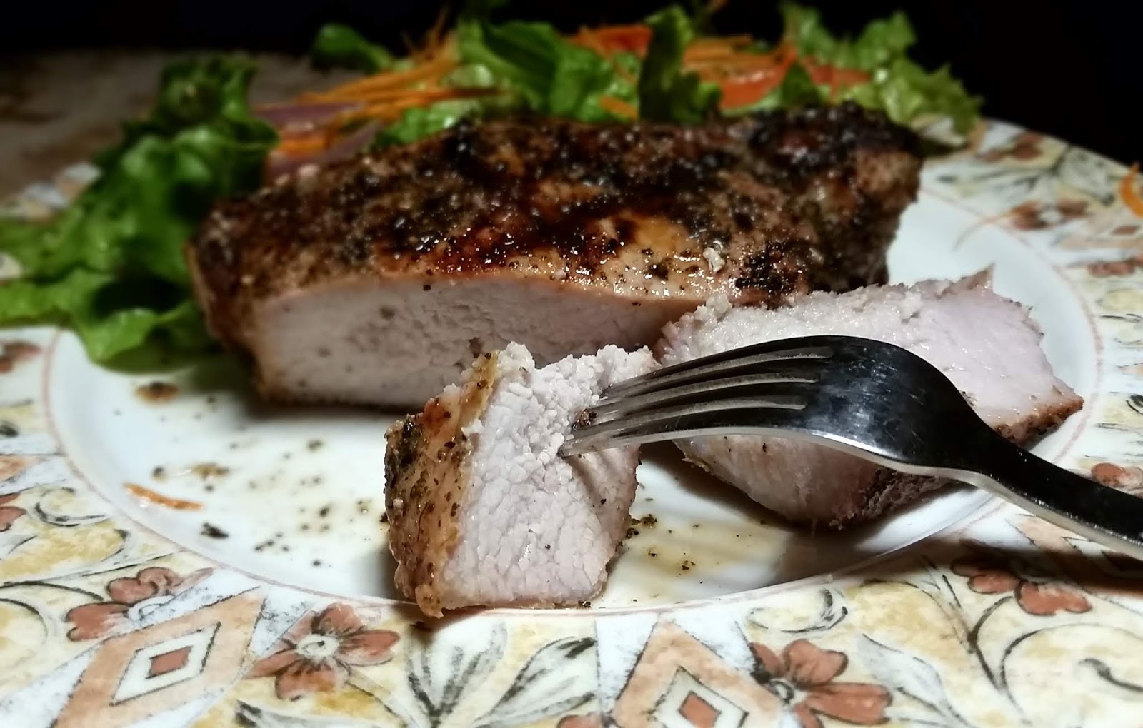 Picked up a couple of really thick pork chops, bone in at the local butcher. Presalted them on the 11th and left them to air dry in the fridge overnight.