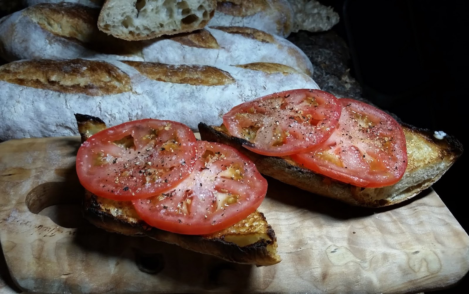 AnnT, that looks beautiful, and even the tomatoes look good. Here they are still uniformly awful. I was just checking to see how Moe was doing and it appears that he's doing well enough that you are baking bread, so that's a good thing. Hugs to both of you.