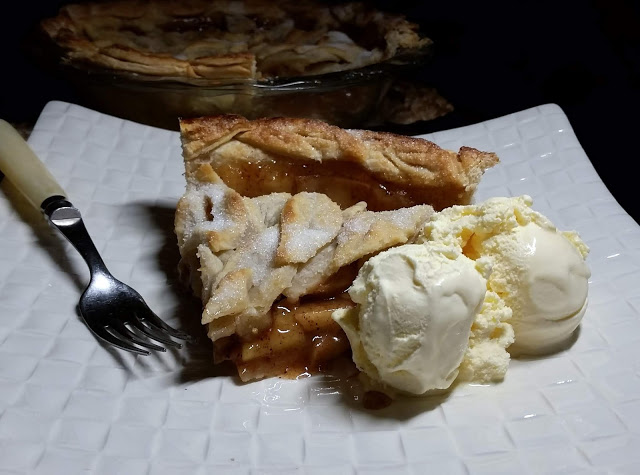 Roll out bottom crust and line pie plate. Add apples, dot with 1