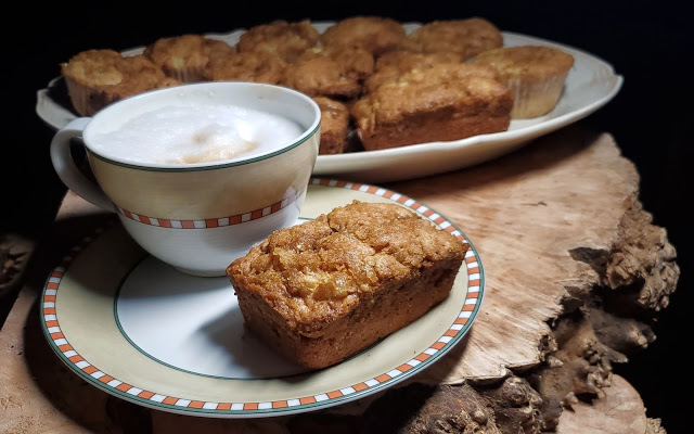 Thank you so much for this. I too read about these on eGullet but was unable to get the recipe itself. I'm looking forward to making these. What size did you dice the apple? If they melt into the batter, the dice must be quite small. Also when you say you baked them in two smaller pans, are you referring to two standard size muffin pans? Thanks, Ann.