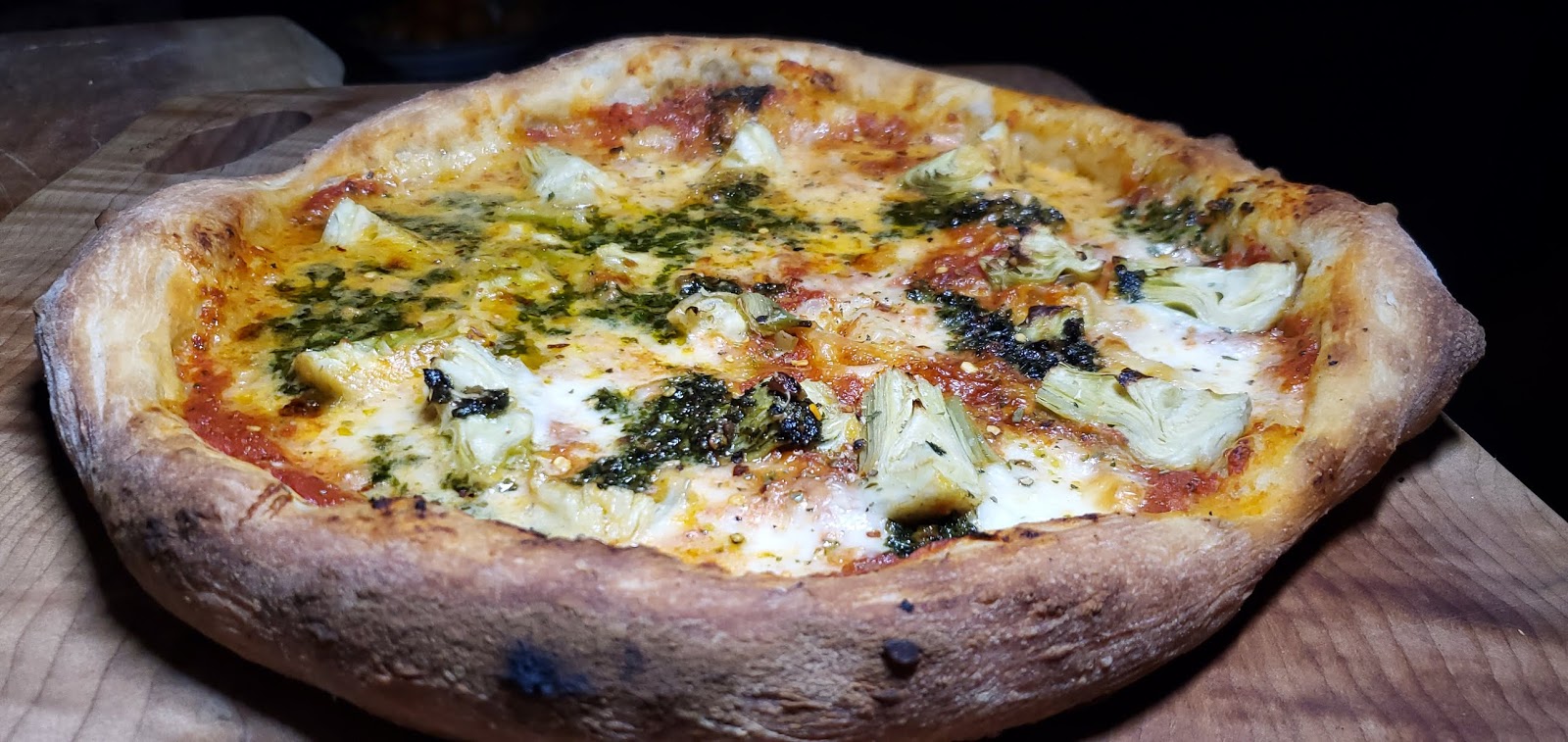 This one topped with artichokes and pesto.