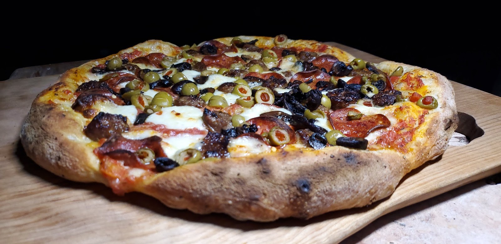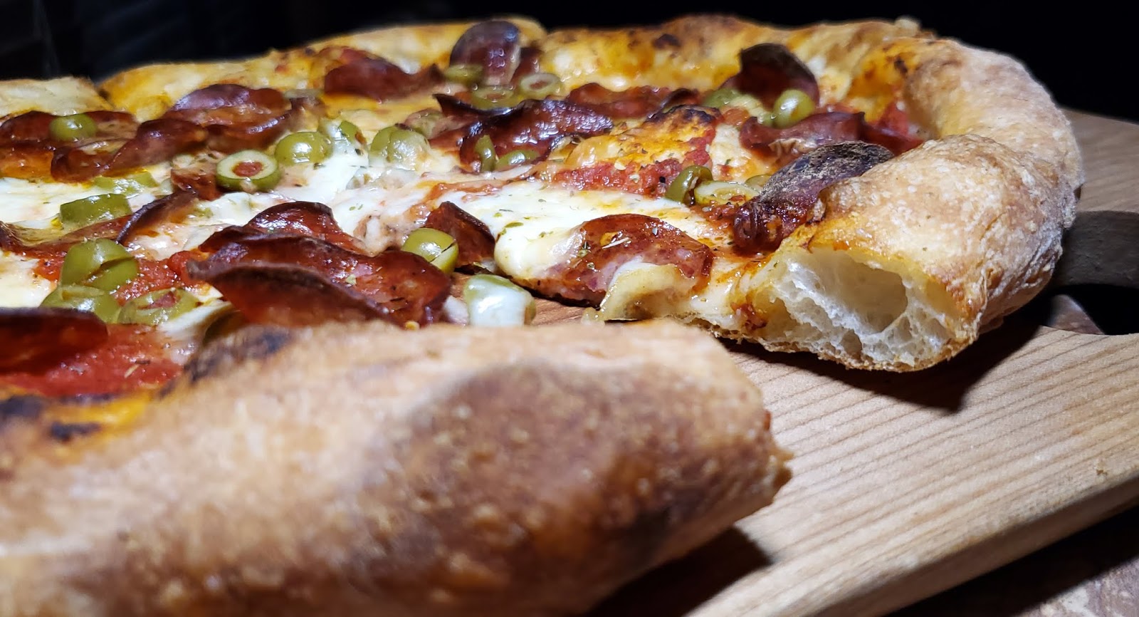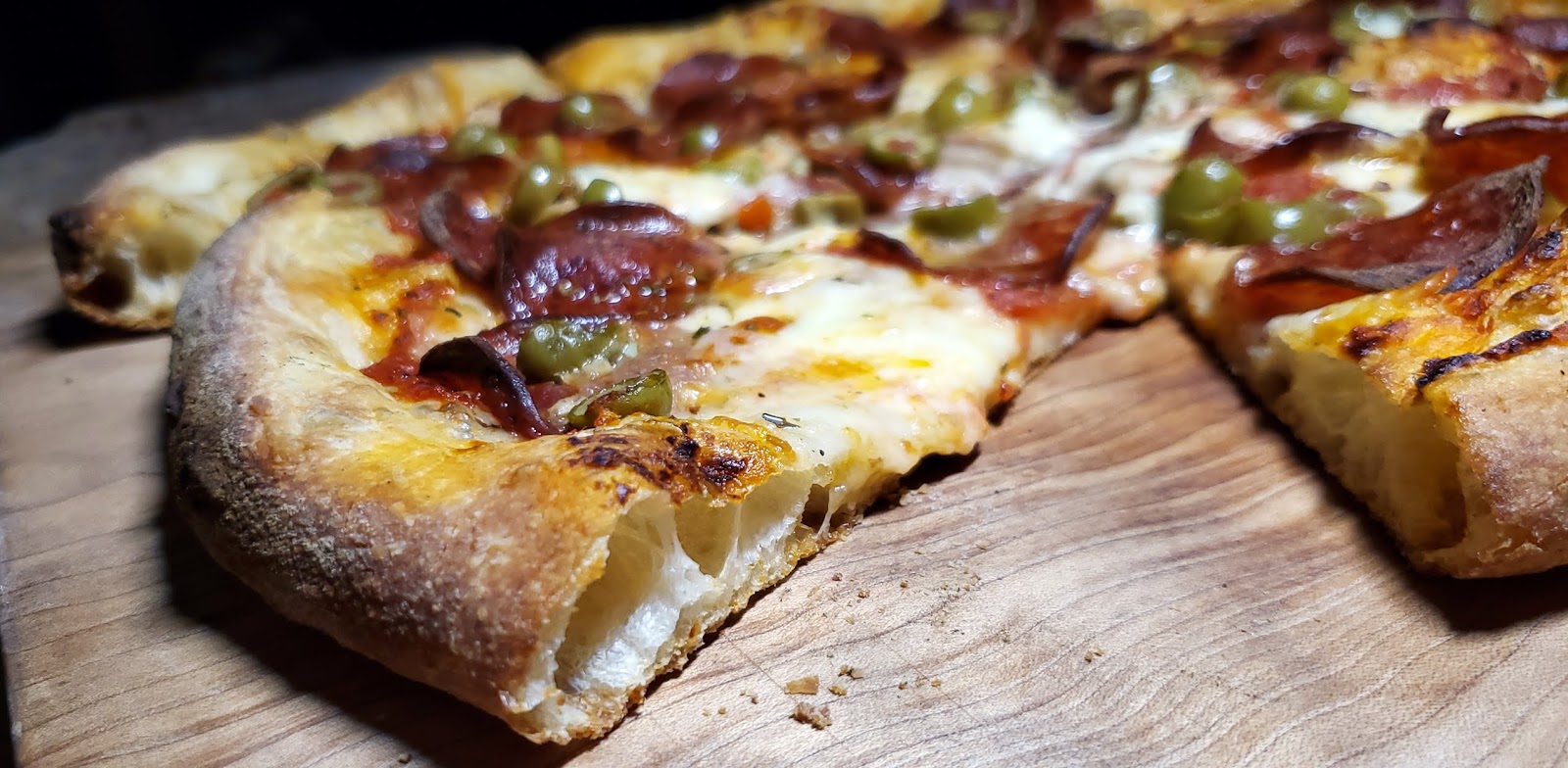 Moe and I shared a pepperoni and olive pizza.