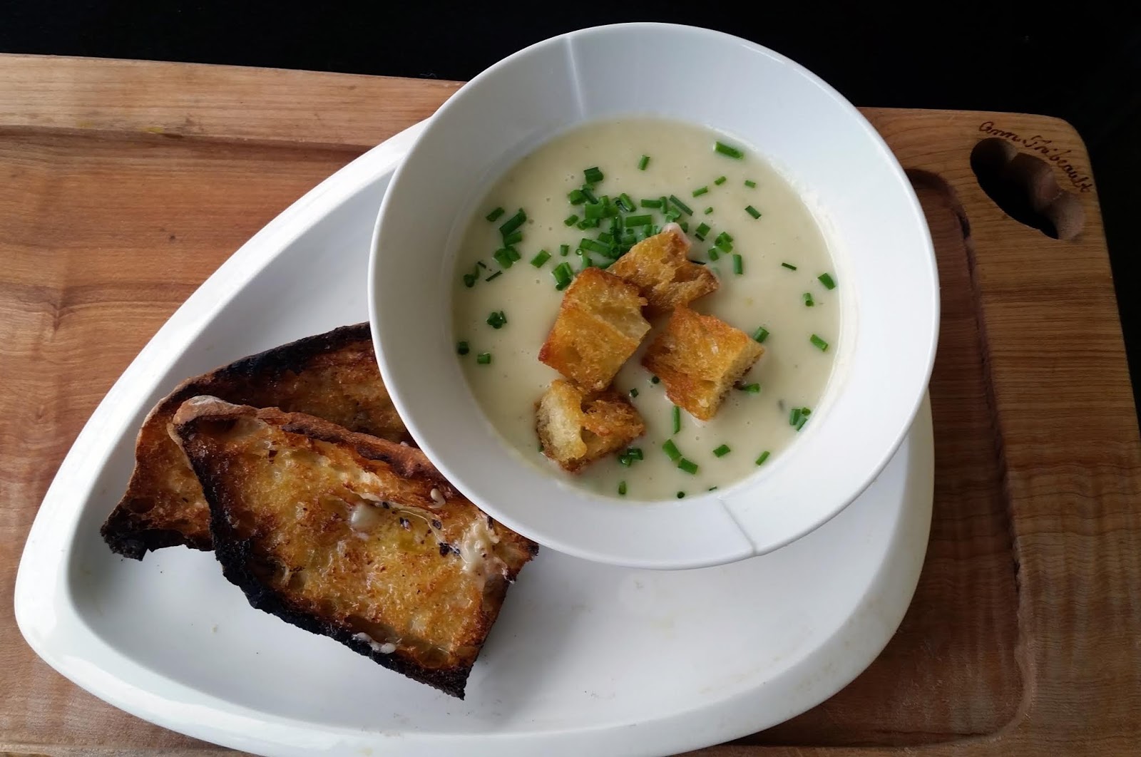 leeks start to soften. Add the garlic, chicken broth, salt, pepper