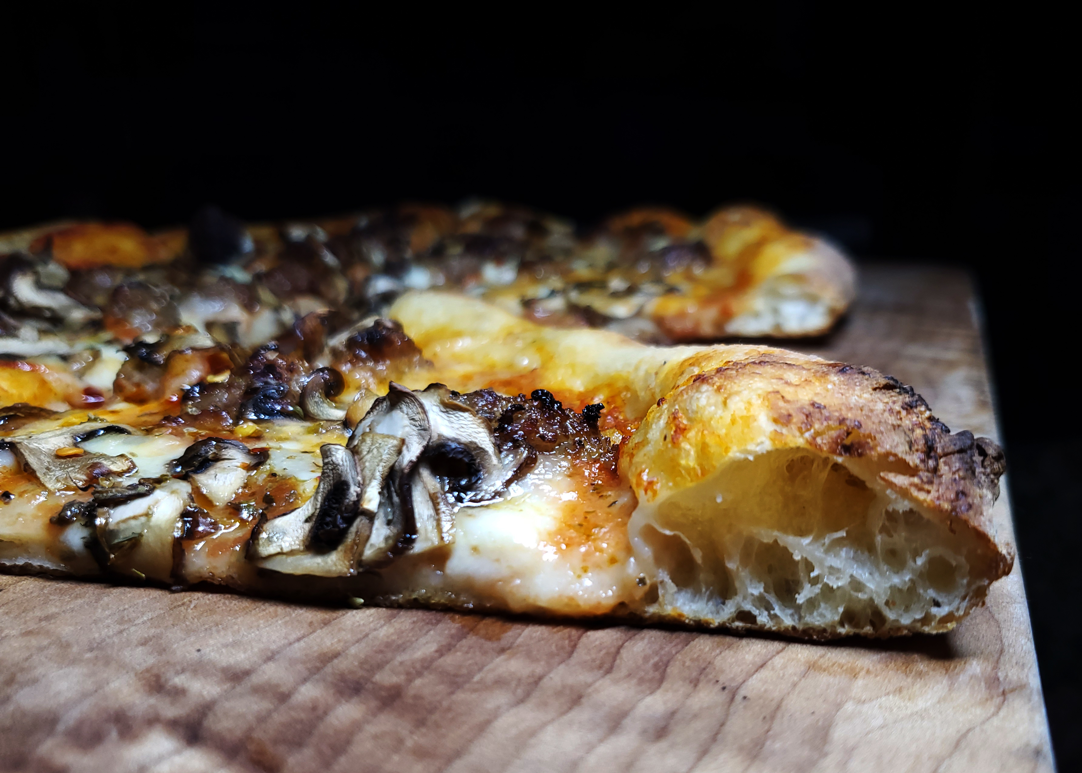 I was expecting the Ooni Pizza oven to arrive Monday and I would give it a test drive. But it didn’t arrive. So, when it was obvious that it wasn’t arriving Tuesday either, I took the dough out of the fridge and we made pizza.