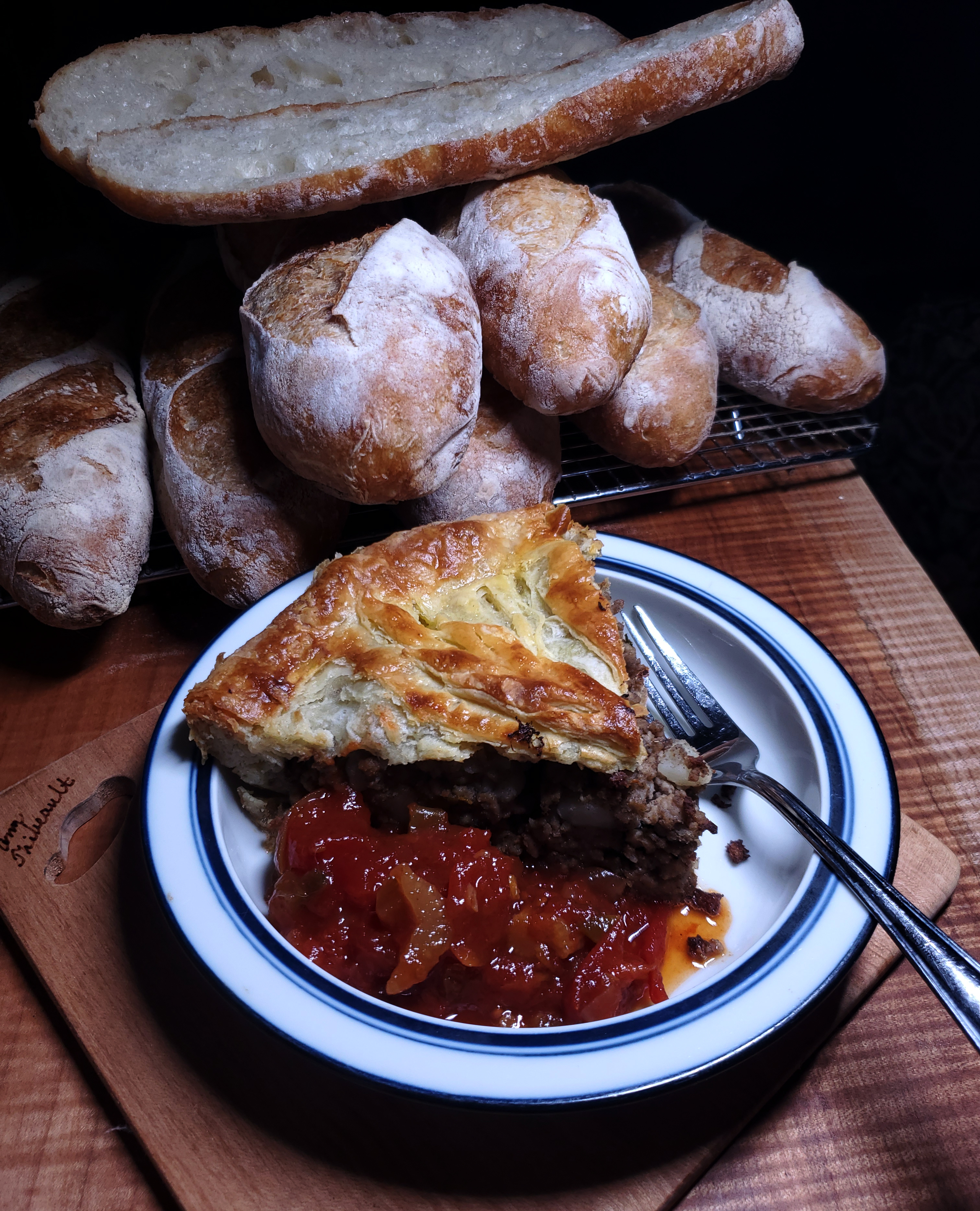 And Moe had leftover tourtiere one morning with the chile sauce and another breakfast
