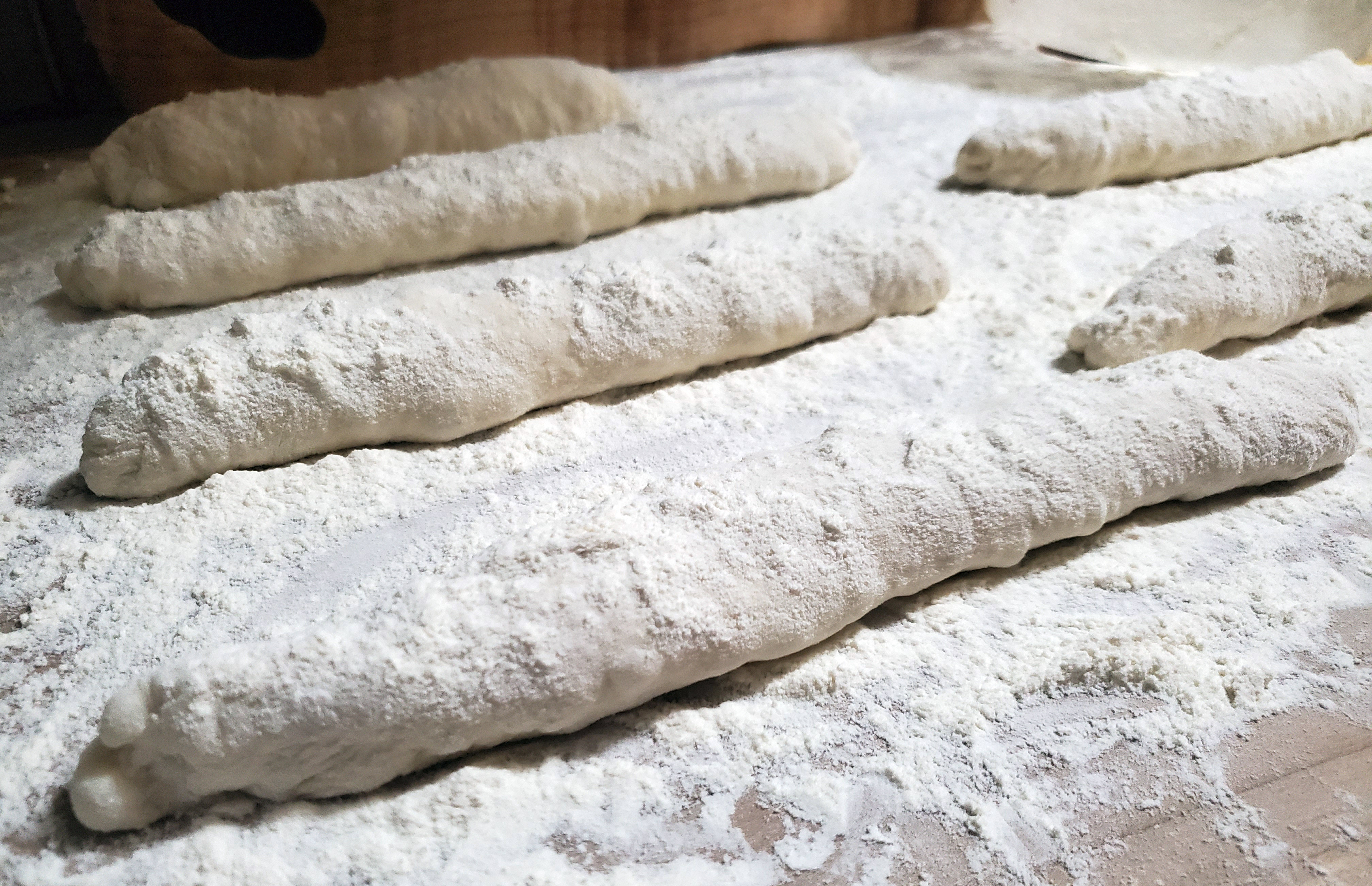 Preshaped and left to rest for 20 minutes and then finished shaping.