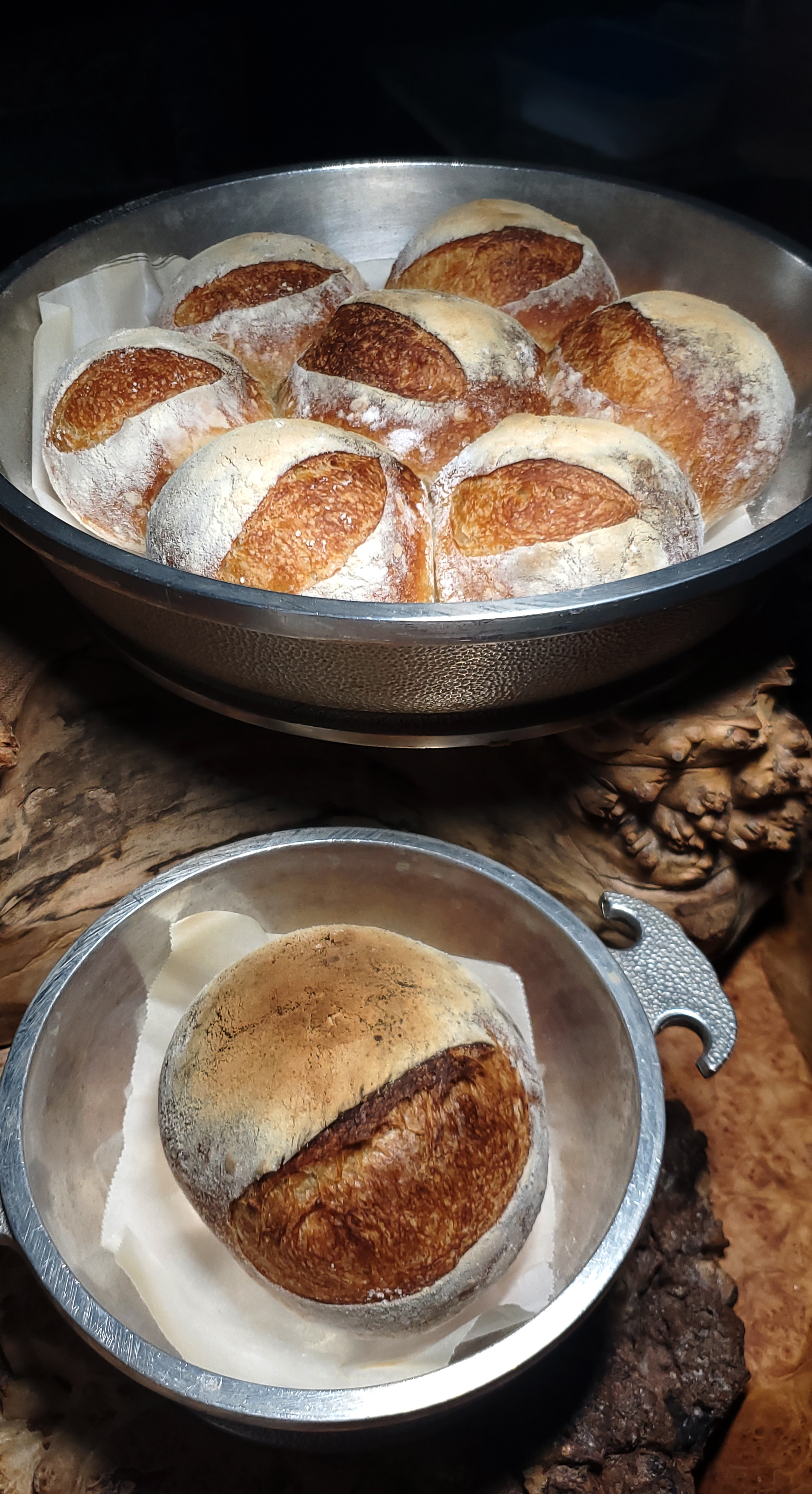 Separated the dough into a large boule, and 7 smaller rolls and one slightly larger.