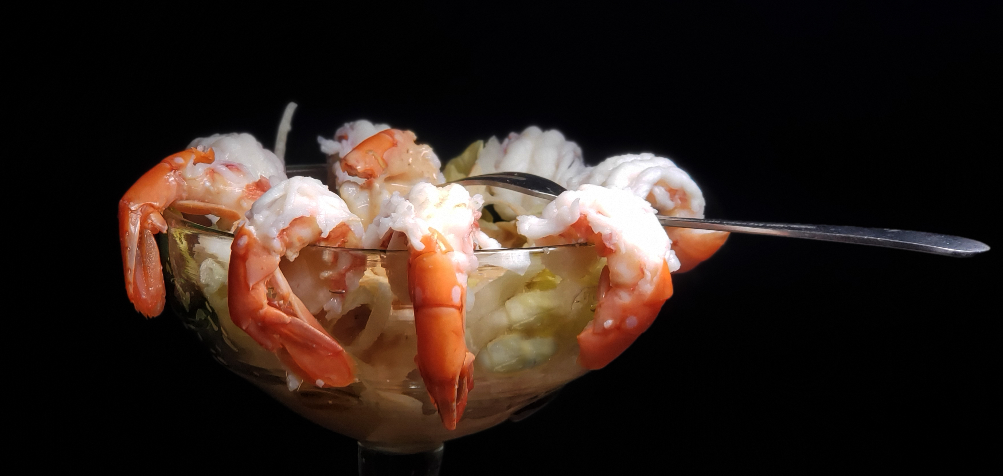 Moe’s dinner. Spot Prawn Cocktail with Homemade Remoulade Sauce.