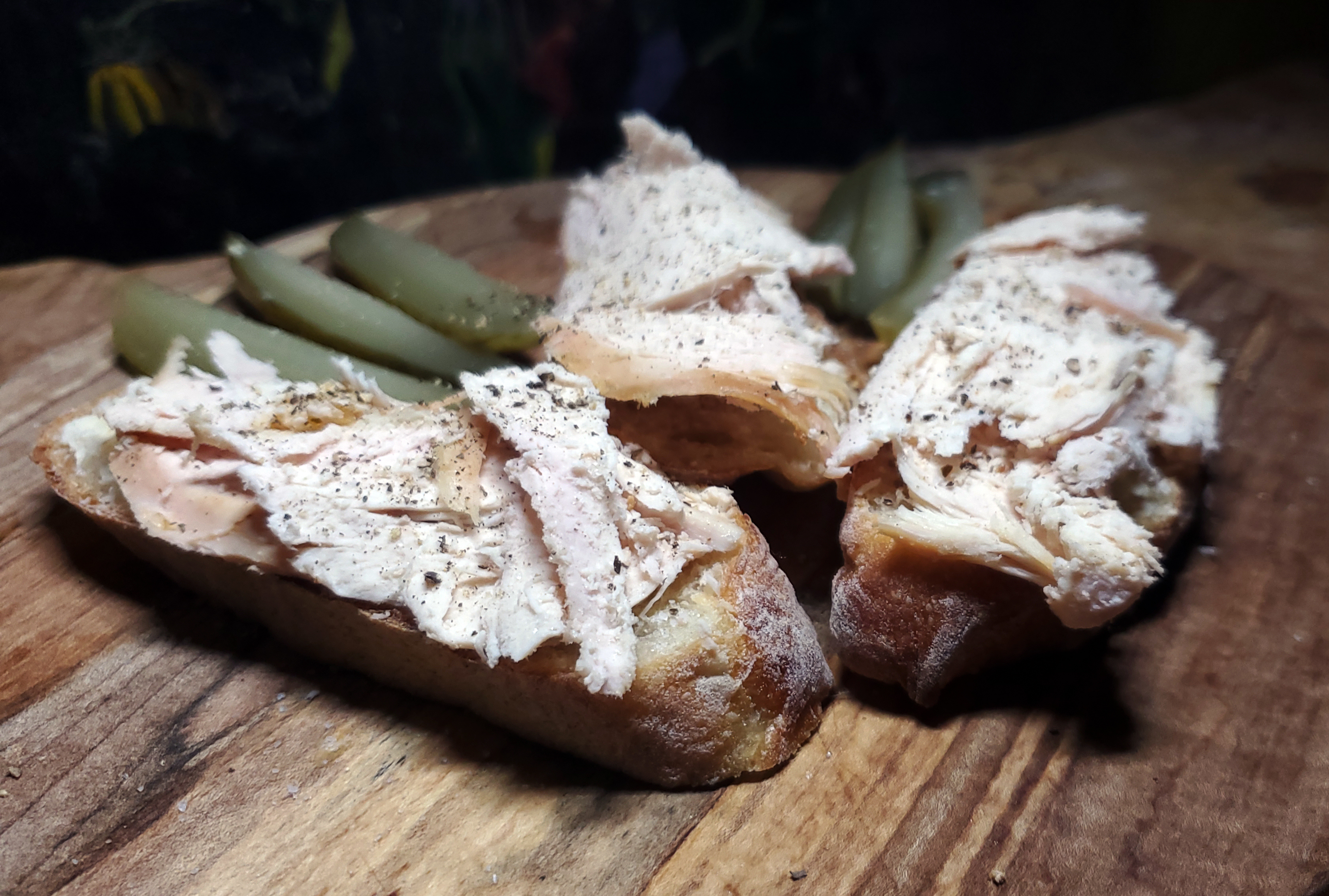 Moe loved the flavour. He ate the two wings before bed last night and had smoked chicken breast on slices of buttered baguette for breakfast this morning.