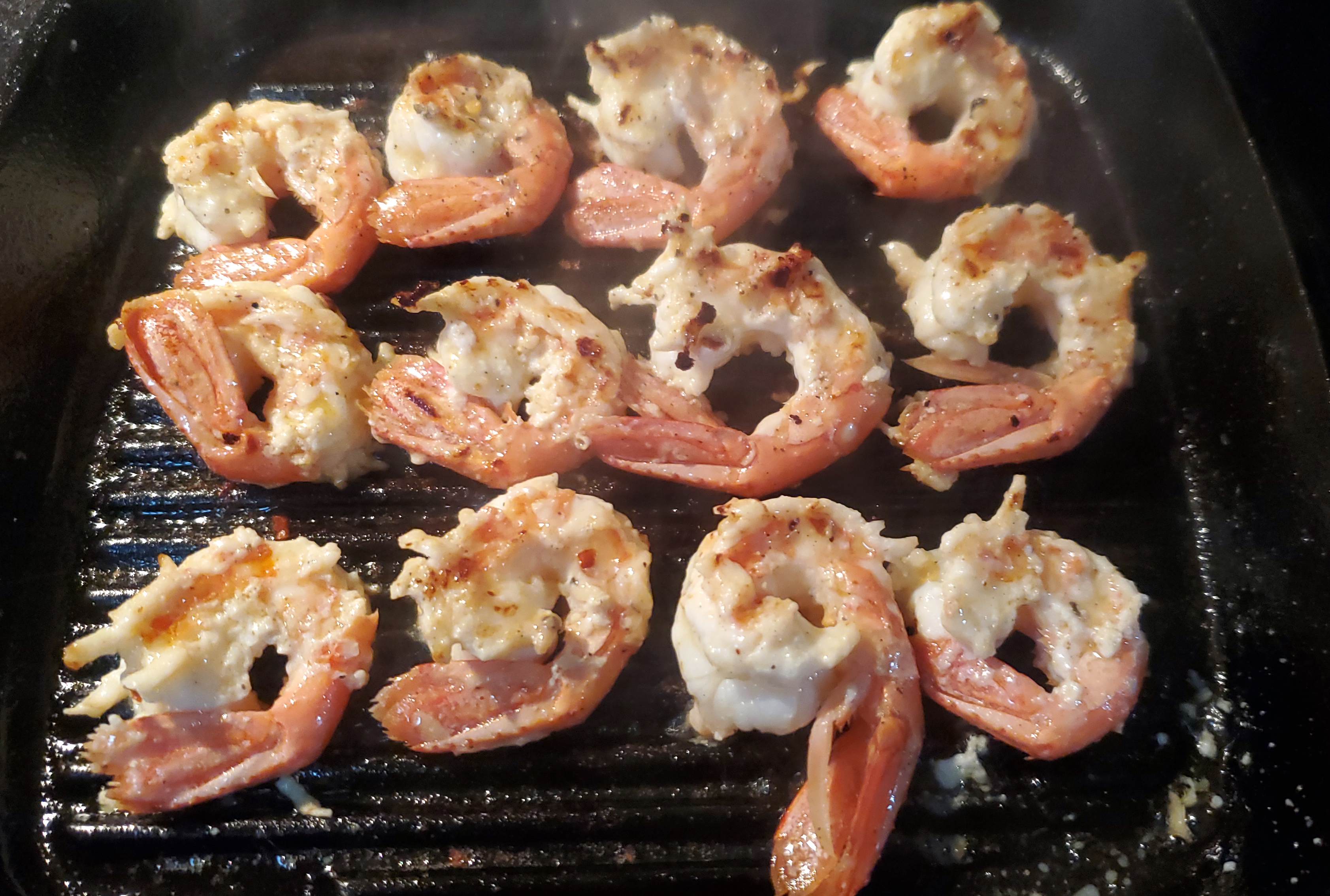 Grilled the prawns on a cast iron grill pan.