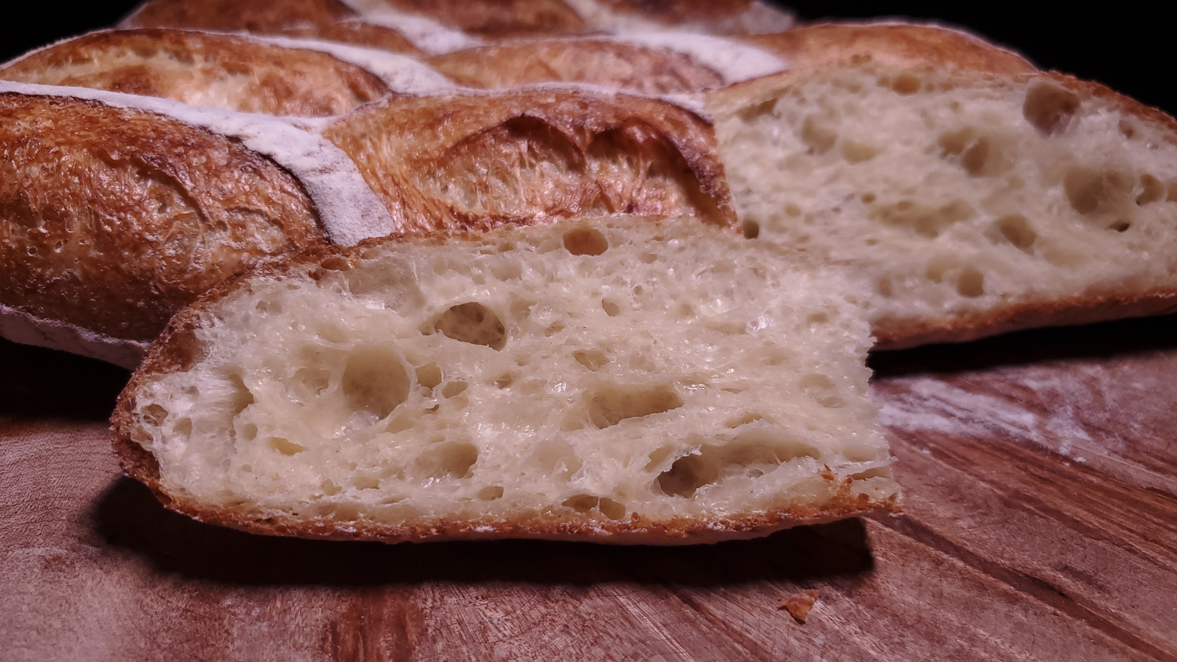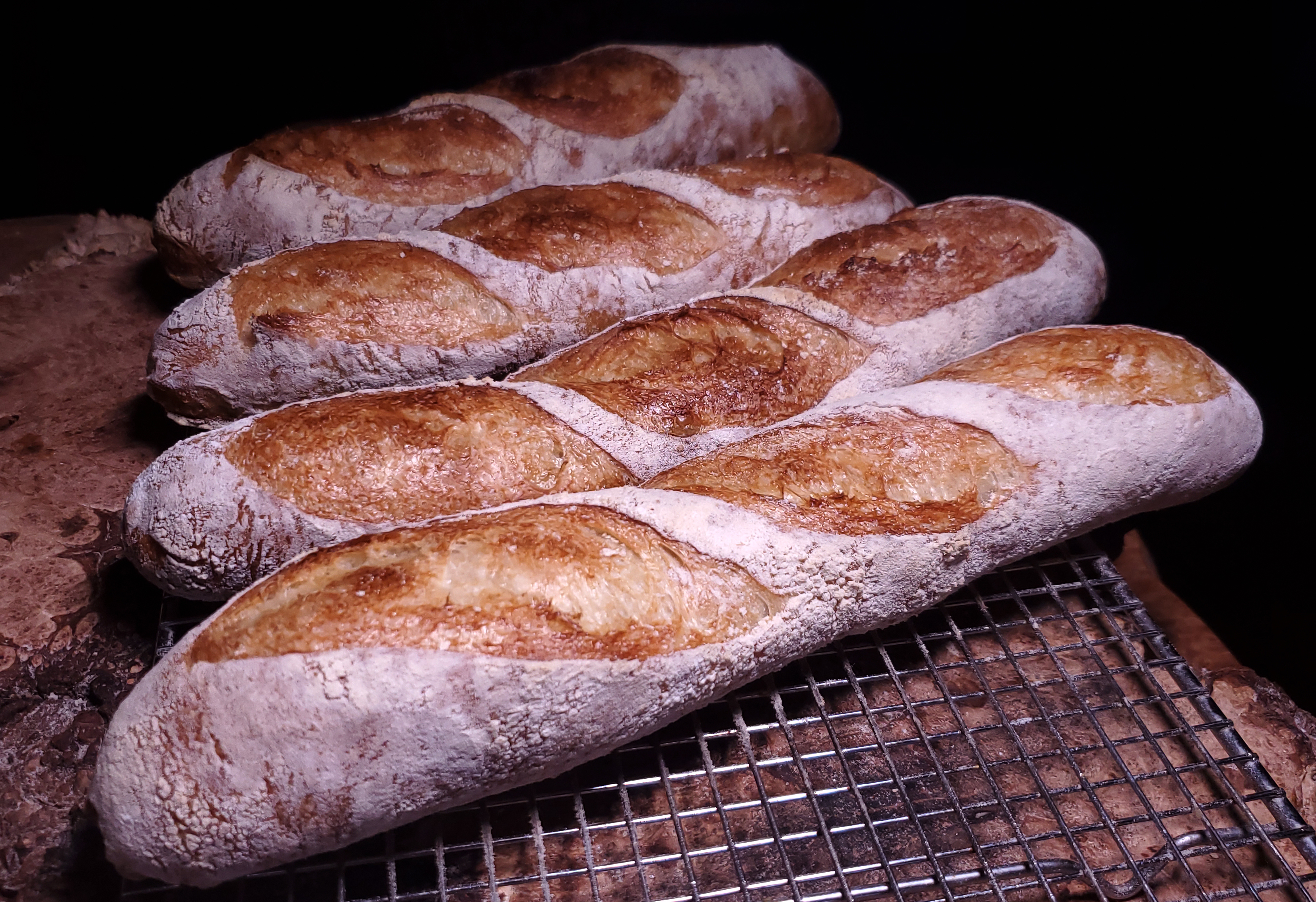 Baguettes baked early Saturday morning . The dough had been left in the fridge from Tuesday night until 9:00 PM Friday night.
