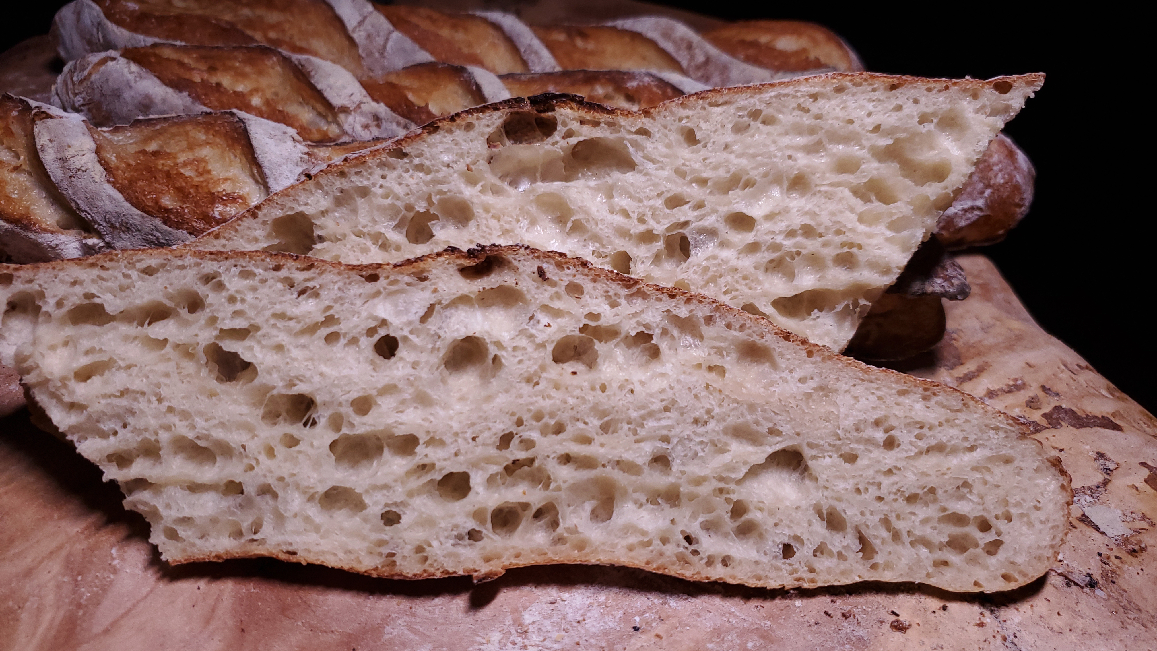 Pulled the 2nd batch of sourdough out of the fridge before 6:00 PM Sunday night. This one was made from a biga started with 60g of my white starter.