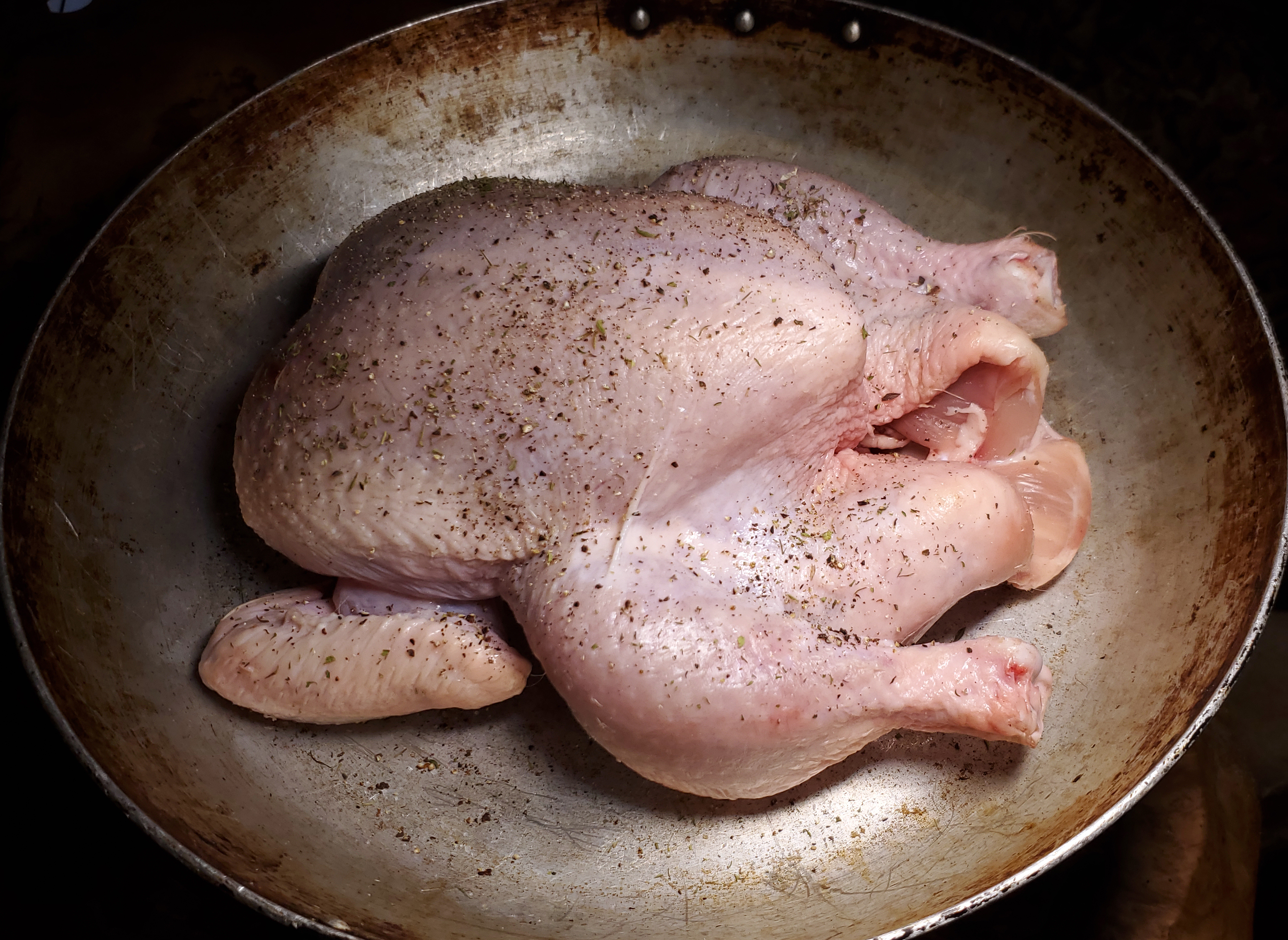 I had bought a 6 pound roast chicken and presalted it last Saturday.
