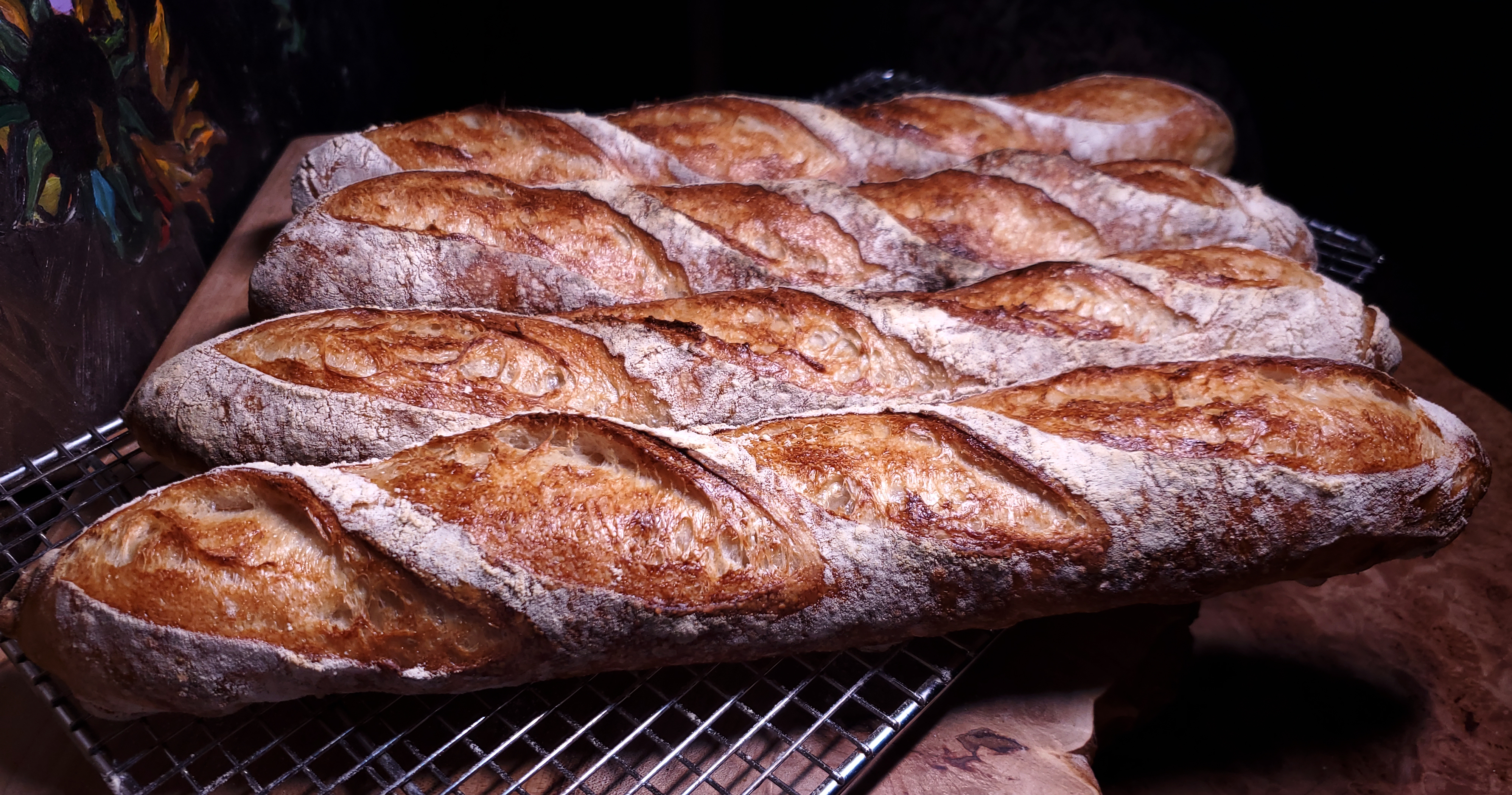 Shaped and baked early Thursday morning. Four long skinny baguettes.