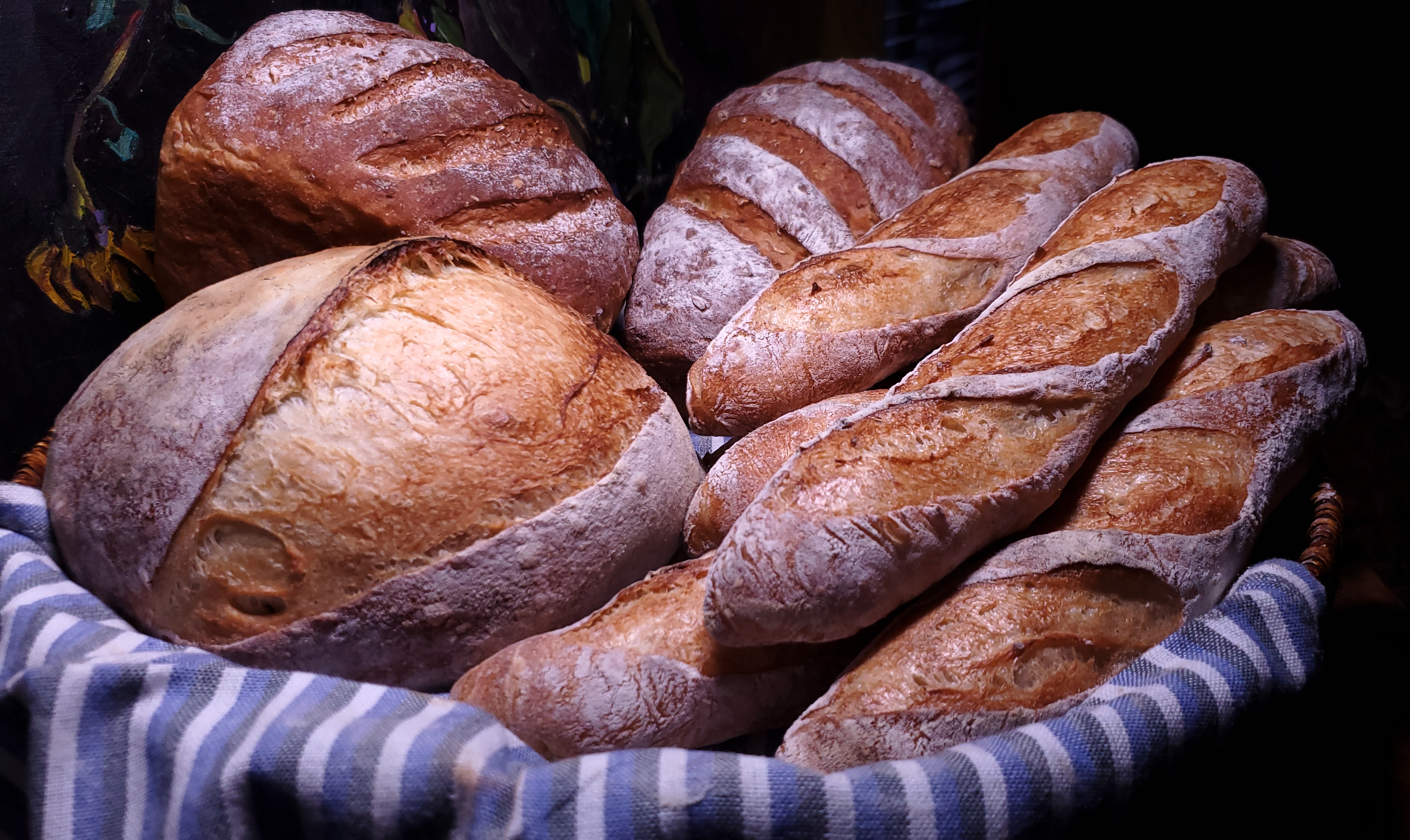 Baguettes, Boule and two loaves of Oatmeal Bread