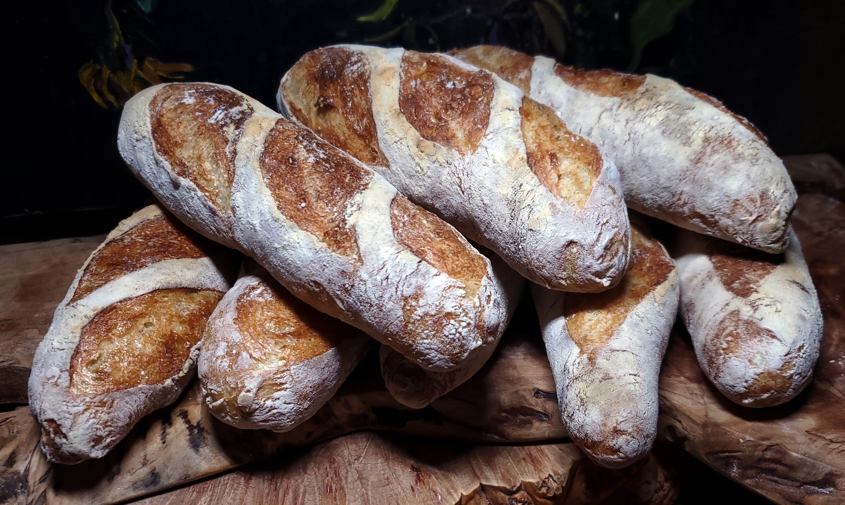 1000g of flour, 1 1/2 g of yeast, 30g of salt and 65% hydration.