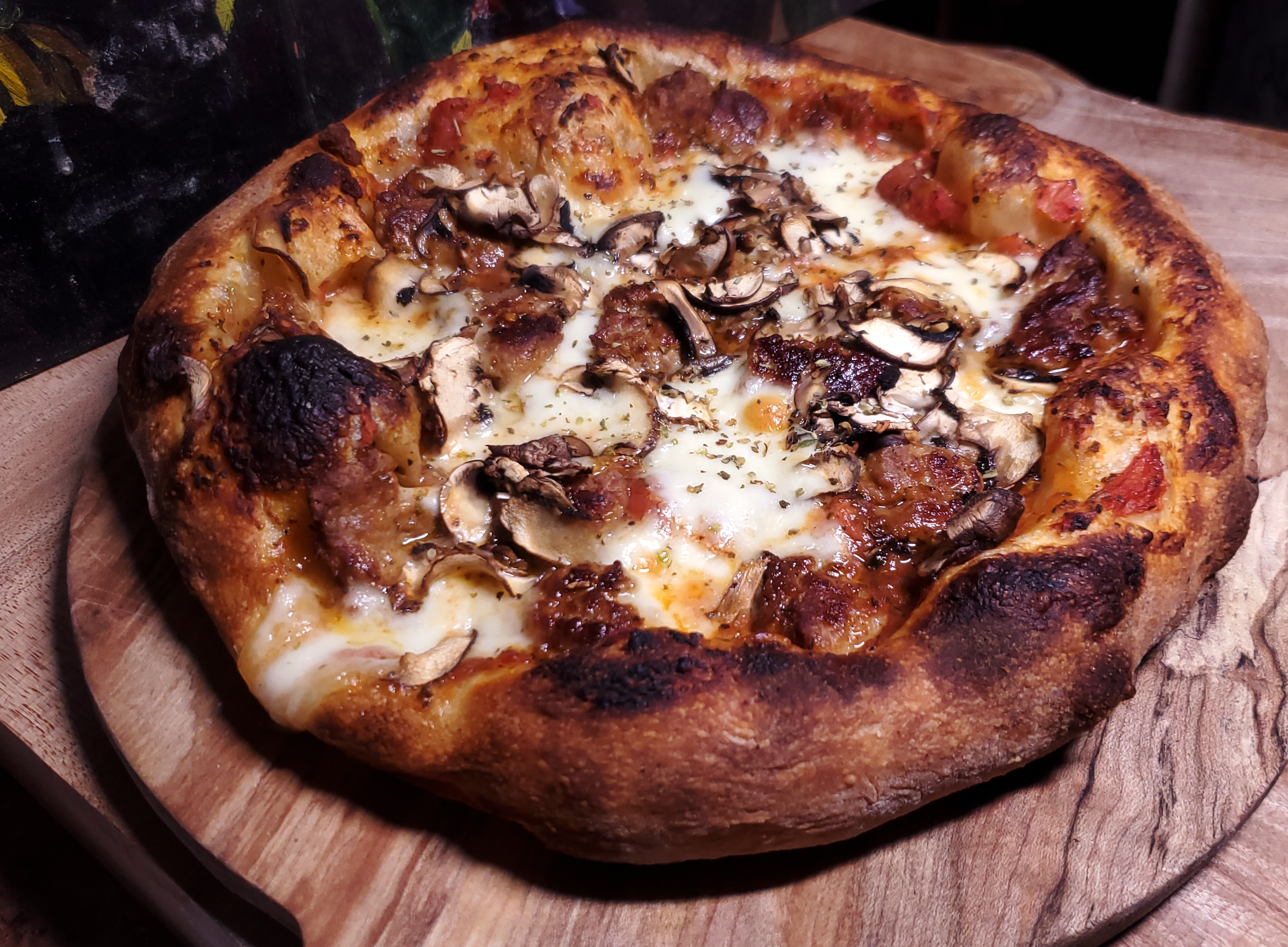 Last night’s pizza using the Jim Lahey method of baking the pizza under the boiler