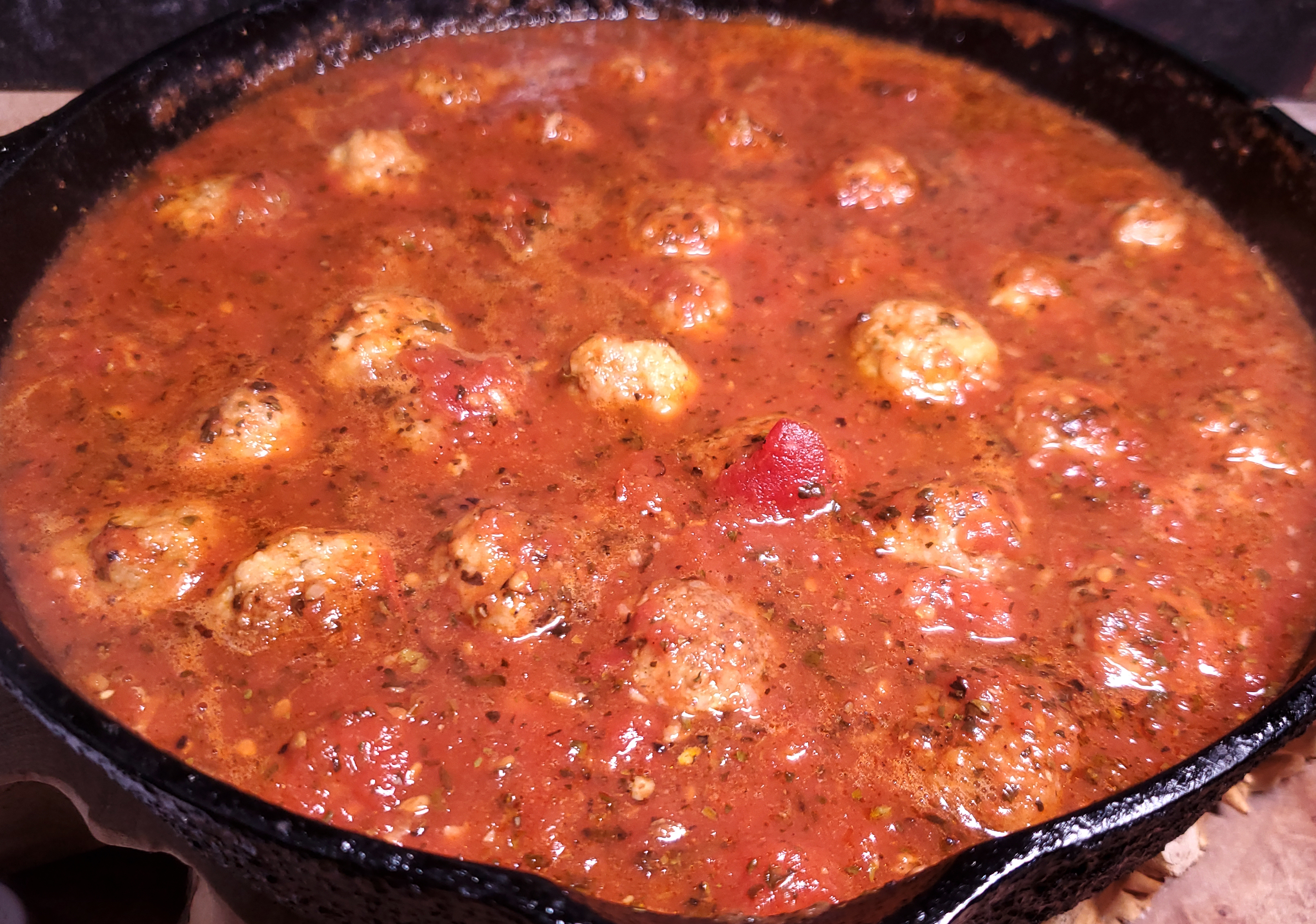 Made my favourite Garlic Basil Meatballs this morning, a mini version, and they are now simmering in the tomato sauce.