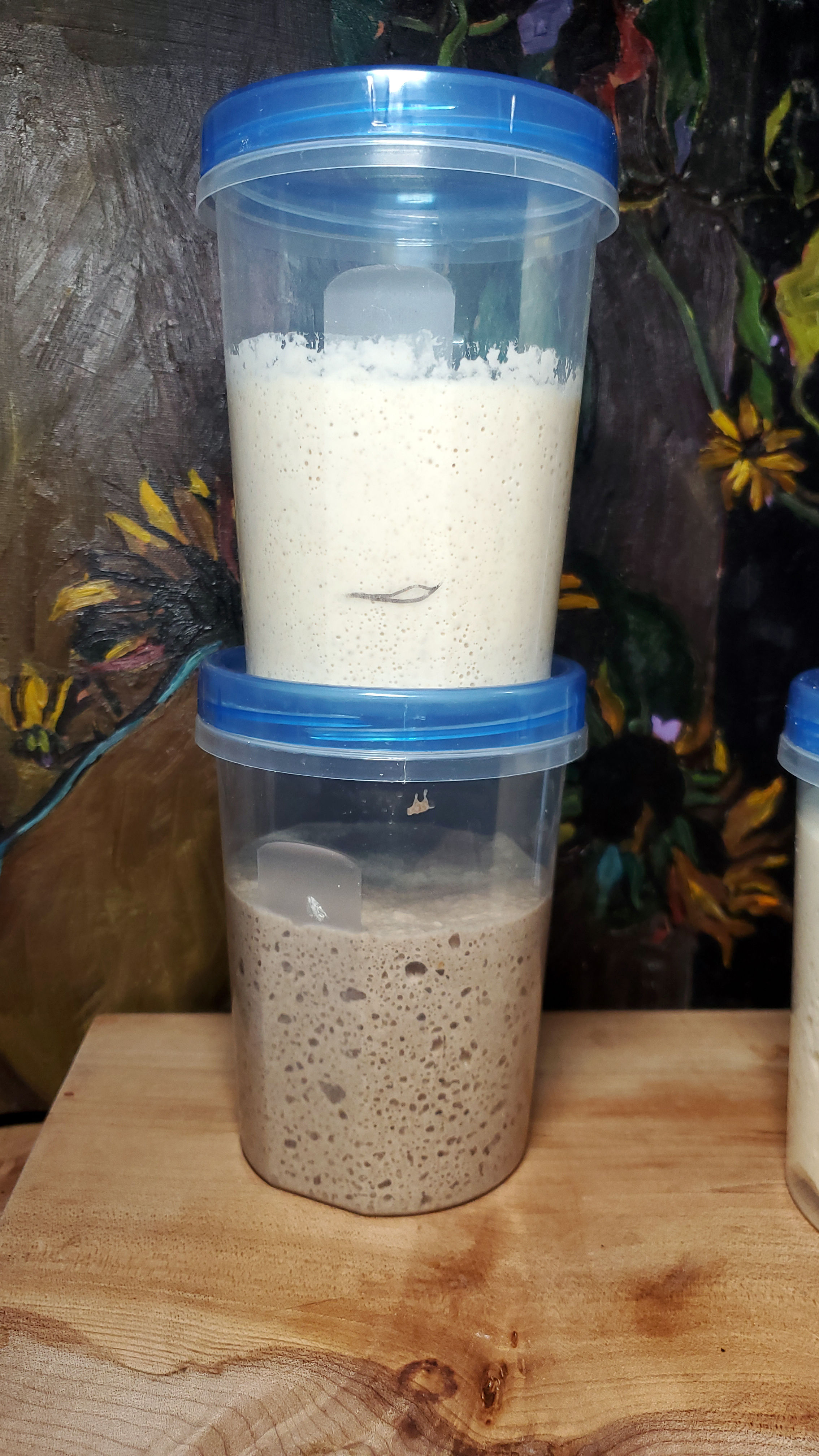 So I fed them both, one with my regular bread flour and the other with the Organic Rye that I always use to feed.