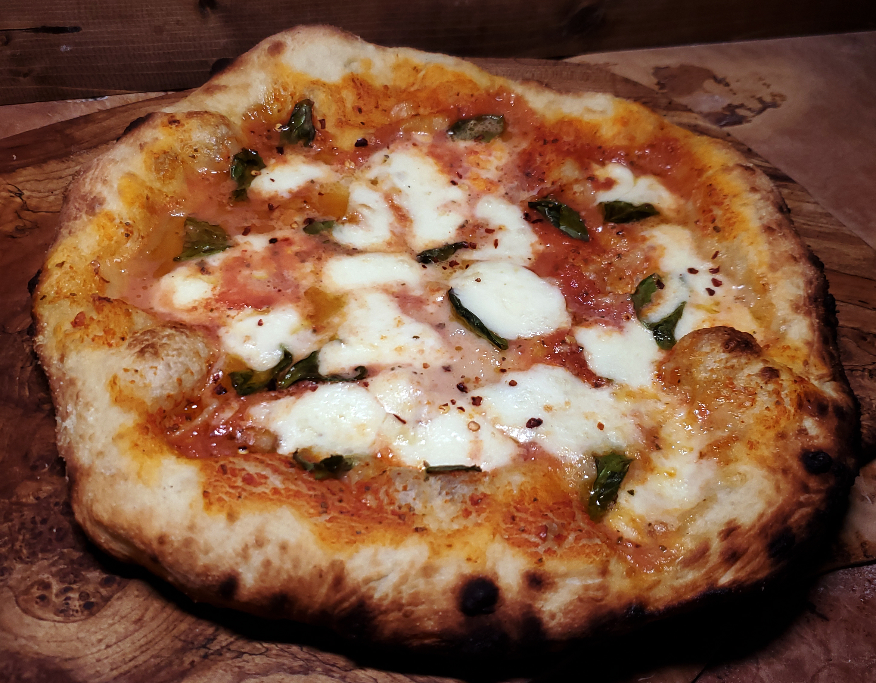 The smaller piece about 350g was a Margherita pizza for Moe and I baked in the OONI.