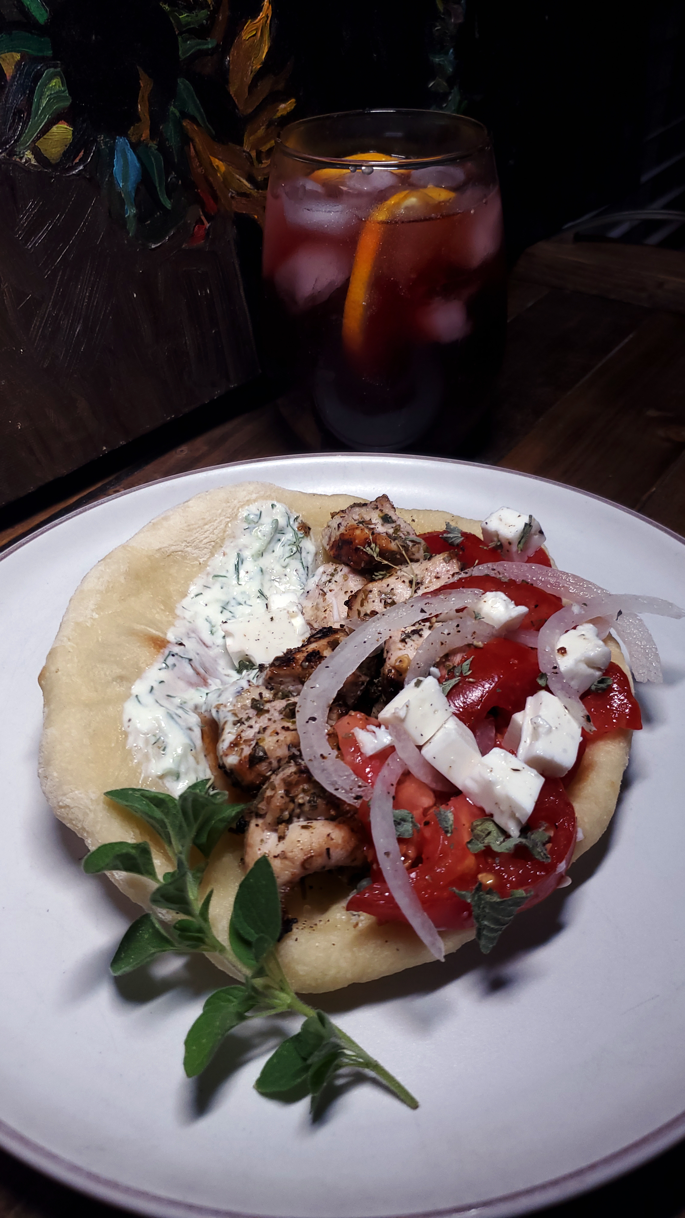 We had grilled chicken souvlaki on homemade pitas for dinner night one night.
