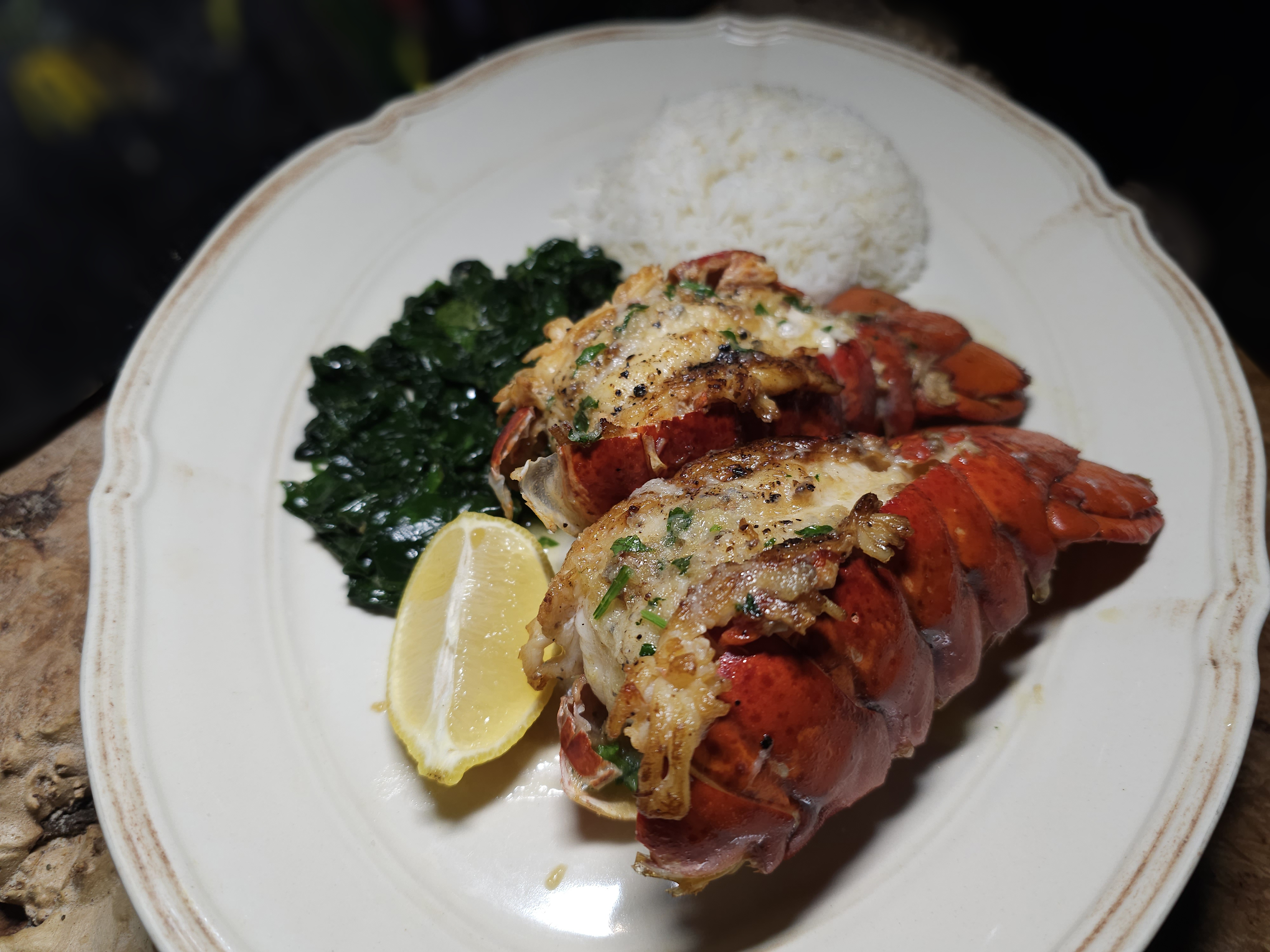 Found a recipe for seared lobster tails in garlic and lemon butter.