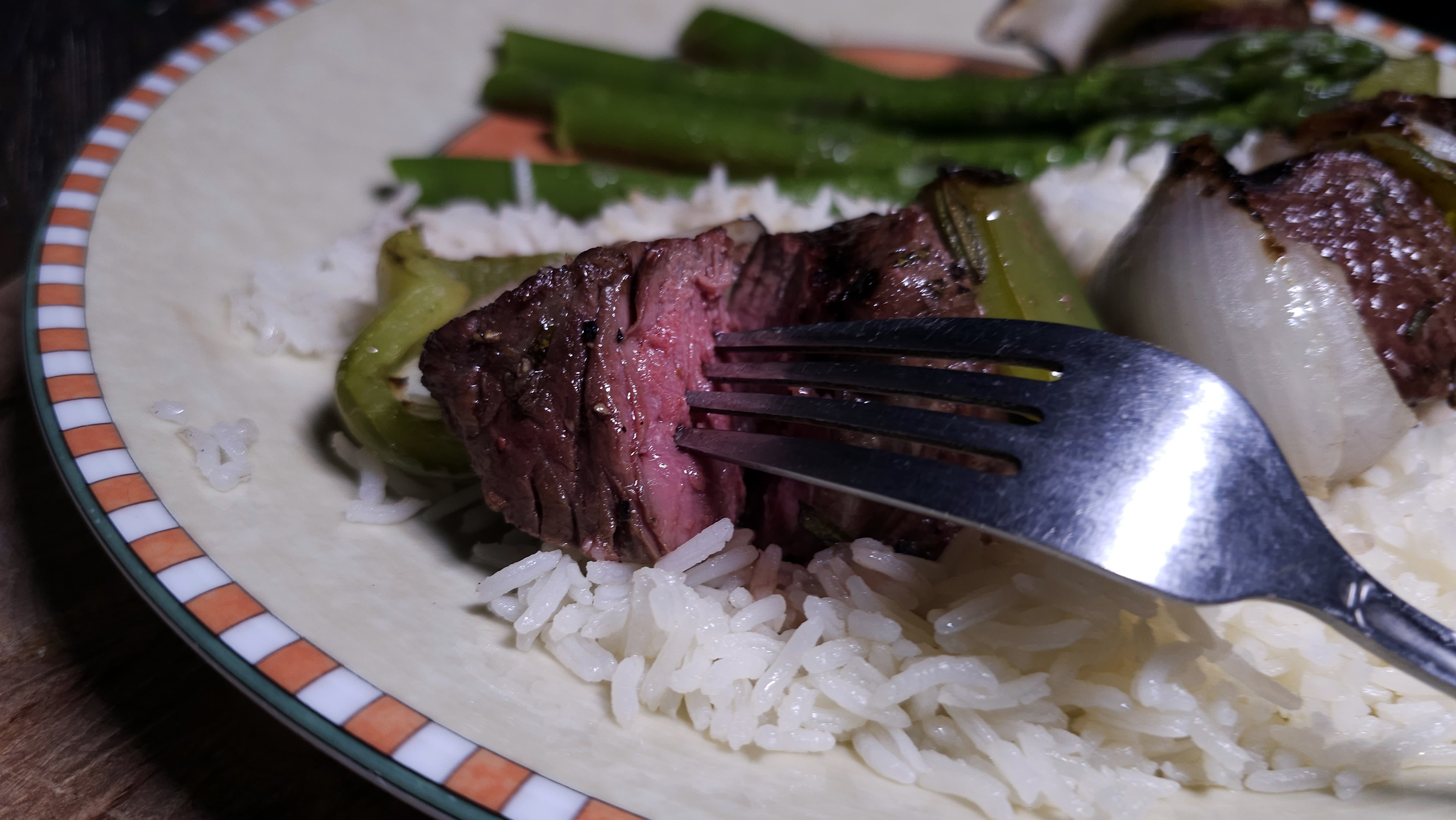 Main course was Sterling Silver beef tenderloin Kabobs.
