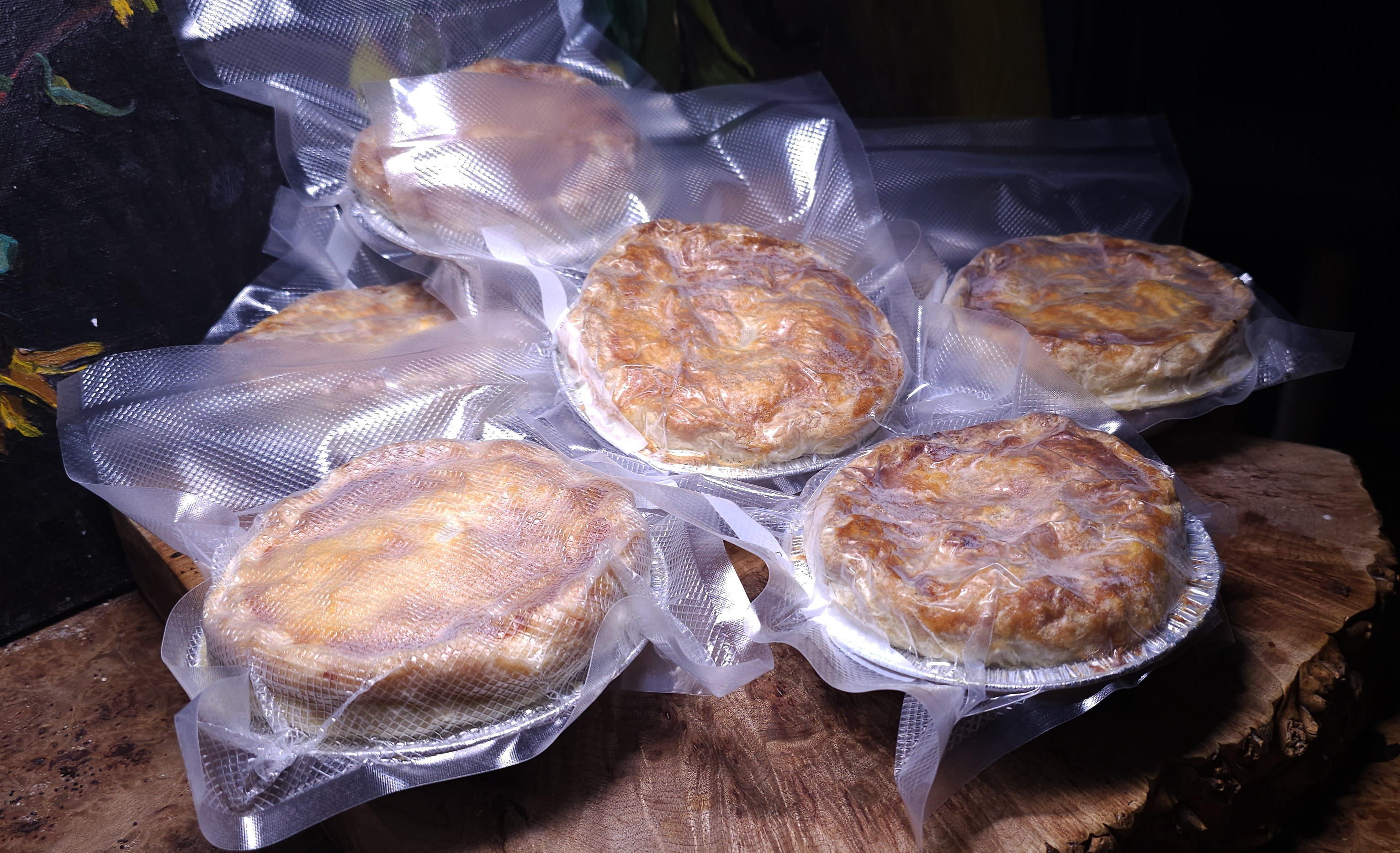 By vacuum sealing while frozen the pies retain their shape